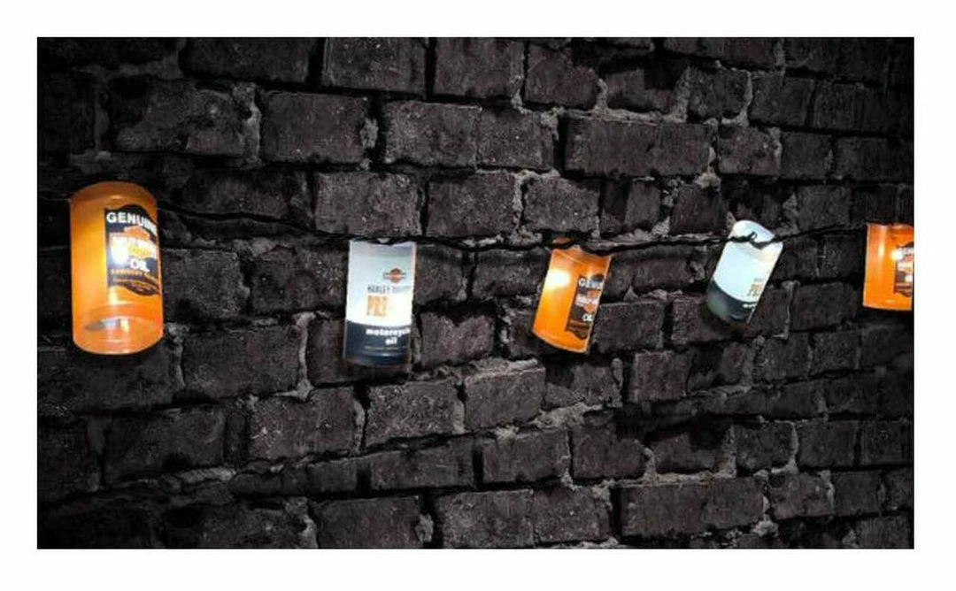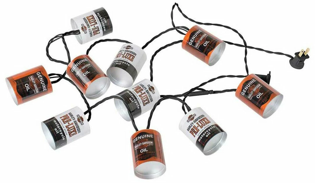 Get the party started with H-D™ Oil Can Party Lights! Featuring classic H-D Oil Cans, this string of ten lights is perfect for both indoor and outdoor use. Zigzag over a picnic table on a patio or in the yard to enhance any event. Do the same in the game room, or drape on a wall. Connect up to three sets for wider coverage.