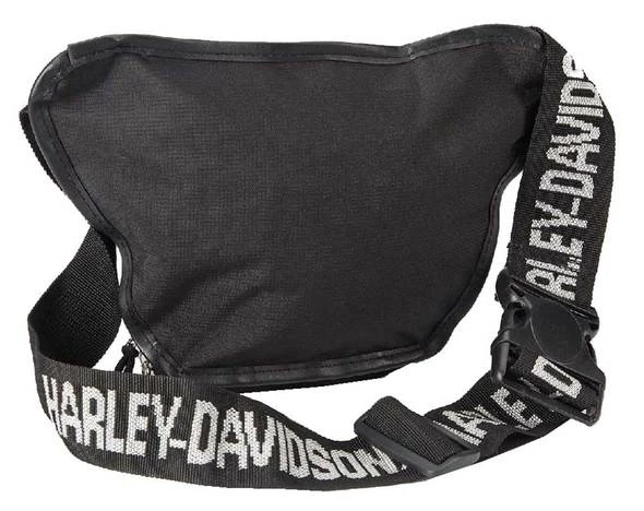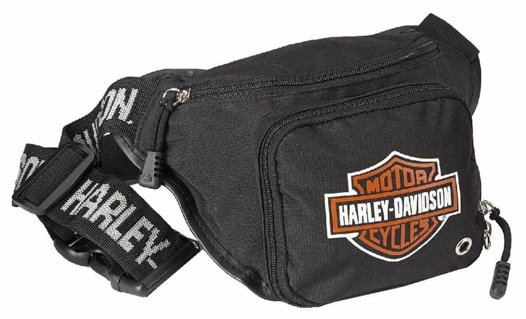 Sometimes a backpack is just too much. For a number of smaller items, this belt bag is perfectly sized and is worn around the waist – no fuss, no muss. Made with strong, water-resistant polyester with a self-healing nylon coil zipper, a classic Harley® Bar & Shield® is front and centered. The adjustable logo web belt comes with a Fastex® slip-lock closure. Both compartments are equipped with handle pull-tabs with small silhouette logos on each. The front zipper section has air grommets to keep things fresh. The bag is the perfect gab-and-go accessory for walking, shopping, riding, or just about anything where a backpack is too much.