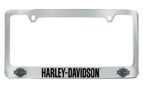 This Harley-Davidson® license plate frame is officially licensed by Harley-Davidson® and has the quality that is expected from Harley-Davidson®. This license plate frame is made from chrome plated brass and epoxy color filled with the Harley-Davidson® logo and script. This license plate frame will look great on any car, truck or SUV. All license plate frames come with matching screw covers. Please look at our pictures for a more detailed view.
