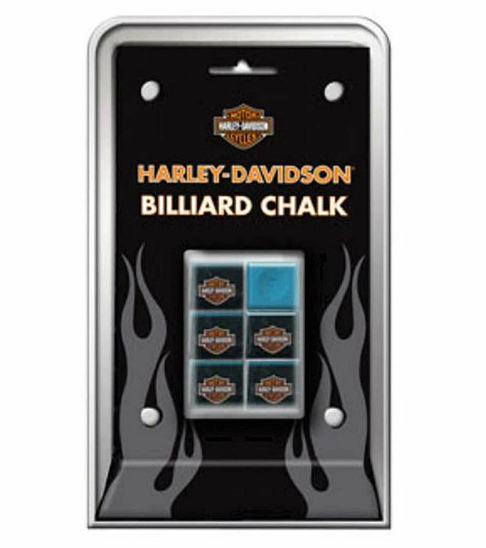 Harley-Davidson® Billiard Chalk Pool Blue HDL-11131. This Harley-Davidson® Billiard Chalk is specially formulated by Master Chalk with an exact moisture level to prevent flaking. It is designed to stay on the tip longer to prevent miscues. Package includes 6-pieces of chalk. HDL-11131