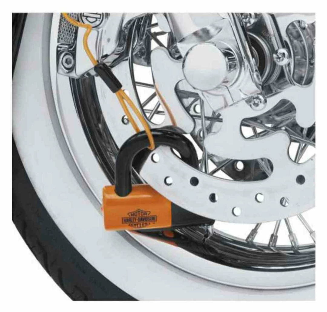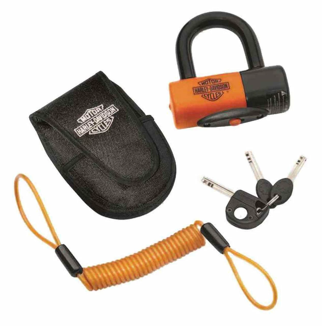 This product is a Universal Fit. Secure your brake disc or sprocket. This lock features a fully removable 14mm shackle with a large inside diameter to simplify the capture of chain links and cable loops. High-security double deadbolt design and anti-float disc lock cylinder is tough to defeat, and the soft nylon coating on the shackle and lock protects your bike’s finish. Blade-style key slot is hidden behind a sliding dust cover for weather protection, and the kit includes a lighted key for night time locking. Bright orange color of the lock and the handy reminder cord provides visibility to the user and added theft deterrence. When not in use, the lock and cord can be stored in the compact ballistic nylon pouch with belt clip. Includes Key Safe program that allows you to order keys if you lose them. Includes: Shackle lock unit with 1 lighted key and 2 blade-style keys, orange reminder cord, and nylon storage pouch. 1 year limited warranty.