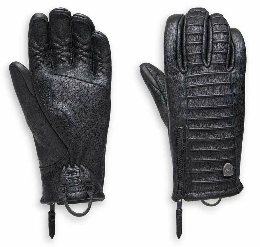 Perforated leather palm and fourchettes help heat evaporate for cooling. Coolcore lining for cooling effect. Ergonomic thumb and 30º pre-curved fingers with elastic detailing. Elastic wrist with zipper closure and entry-assist cuff loop. Visco foam knuckle protector. Comfort seams. Touchscreen compatible. Roper finger stitching. Embossed graphics. Metal badge. Solid and perforated goatskin leather. Unlined palm. Polyester Coolcore lining on back of hand.