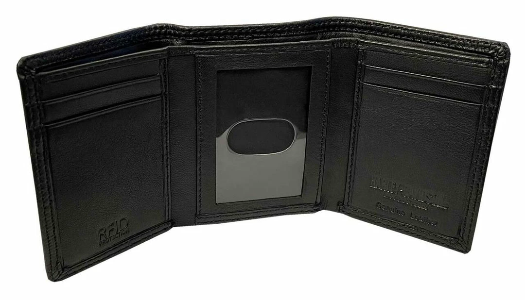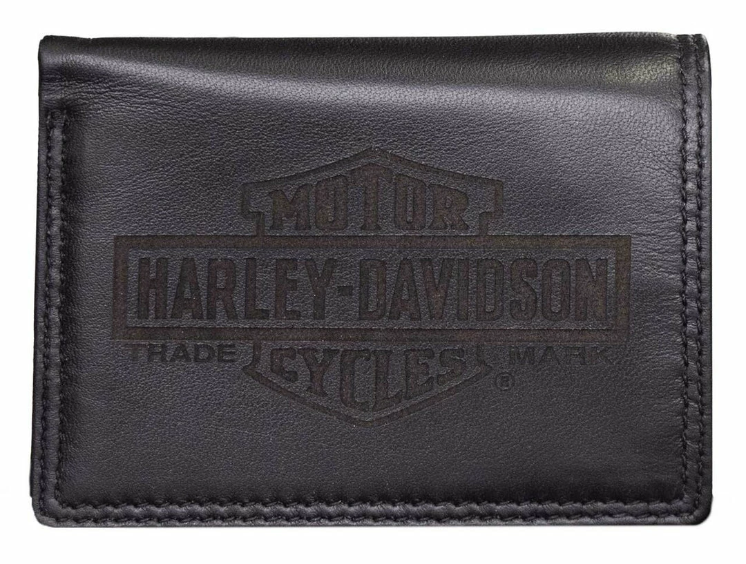 Constructed from smooth genuine lambskin leather and decorated with a lasered vintage Bar & Shield logo. Interior features: 6 credit card slots, ID window and cash slot. RFID blocking wallet. Silky poly blended black lining. High-quality wallet that will hold up ride after ride. Includes a gift box, perfect for this Holiday Season.