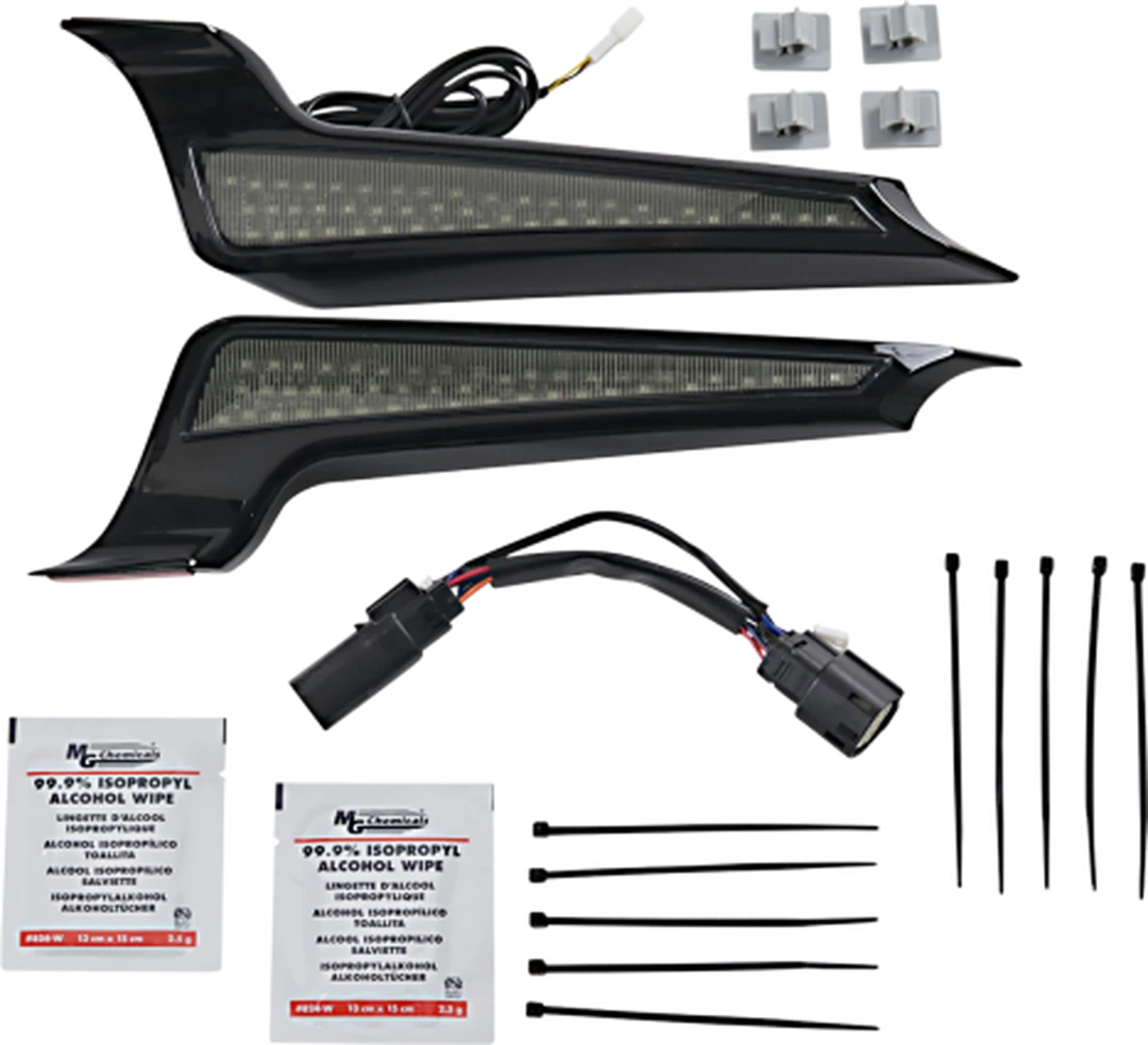 - Units adhere to each side of the rear fender fascia with double sided tape