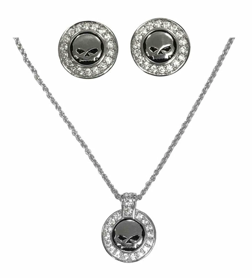 Both gorgeous items are constructed from high-quality Sterling Silver. Stunning white crystal embellishment surrounding an iconic Willie G Skull logo on both earrings and necklace pendent. Necklace chain measures 18″ with a secure lobster claw closure. Post earrings with a secure butterfly back fastening. Mod Jewelry is hand crafted with the highest attention to detail and quality, utilizing the finest materials. Perfect accessory for any occasion. Skip the box of chocolates this year and get her what she really wants!
