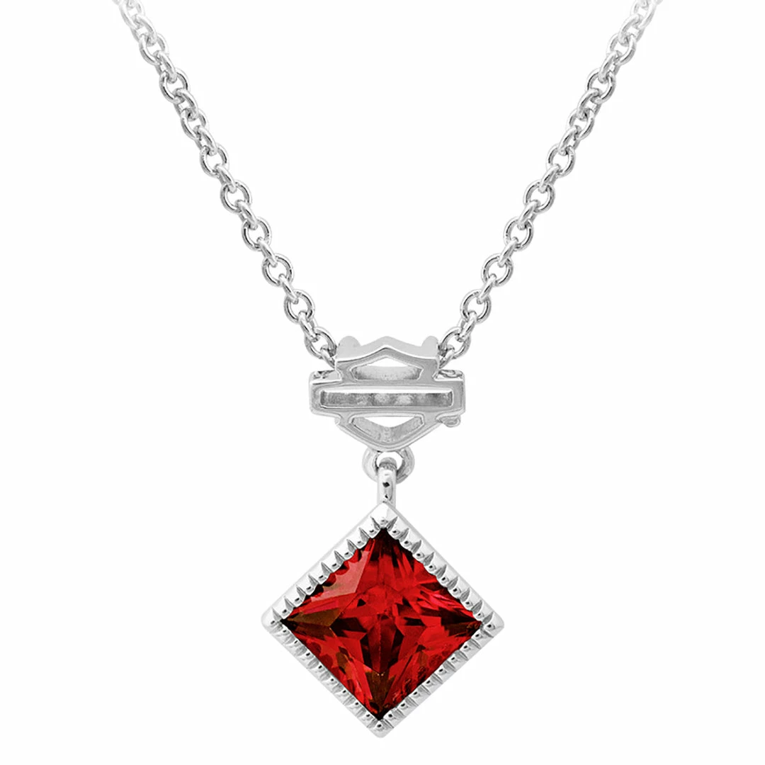 Fire Red gemstones in this beautiful Radiant collection. Elegant design of square shape under a Bar & Shield. This Necklace is perfect date nights or special events.
