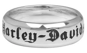 This simply stated 7.5mm wide Men’s Harley-Davidson® Wedding Band features a Old English engraved lettering set into a High-Polished, smooth Comfort fit Sterling Silver Band.