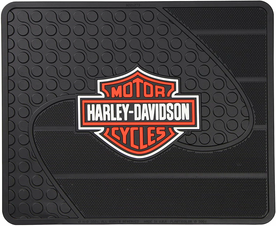 This Officially Licensed Harley Factory Utility mat can be used to provide rear floorboard protection in your vehicle, or for just about any other surface, such as on a desk or table, under pet dishes, or on top of a workbench.