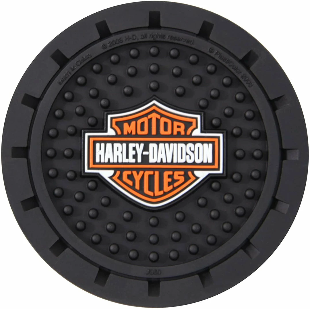 The Harley-Davidson® Bar & Shield Car Drink Holder Coaster Set is perfect for any car. Our popular moisture blocking coasters designed to fit most car and boat cup holders. They are also great for use on your bar, game table, coffee table or anywhere you could use a little water ring protection! Keeps car cleaner and water bottle safer in place. Made of durable easy to clean vinyl. Trimmable for large and small auto/truck cup holders.