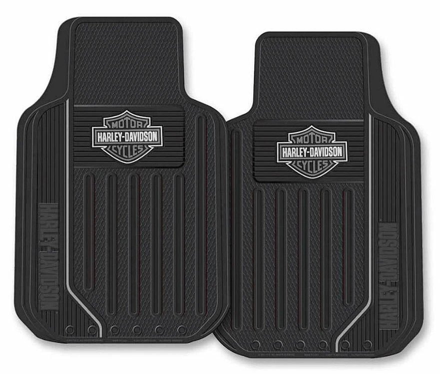 The H-D® Black Bar & Shield® Floor Mats minimize maintenance by keeping the floor of your auto clean. The floor mats have trim-to-fit edges for a customized fit. The non-carpeted floor mats have tonal grey molded colors that won’t fade and are easily cleaned with soap and water. The backs are nibbed for a secure fit.