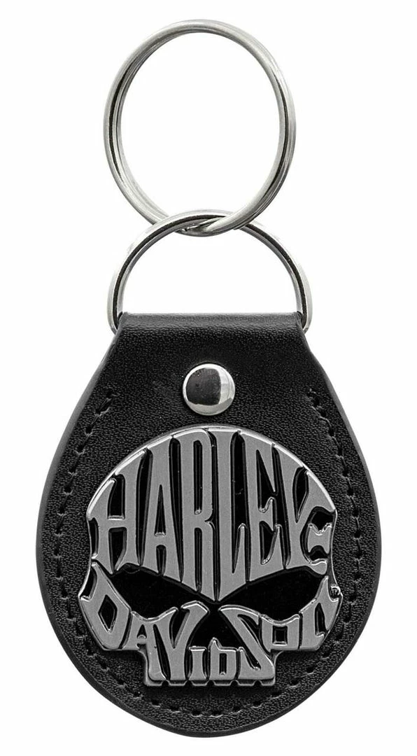 Harley-Davidson® Skull Vinyl Fob Keychain, 4546P. Made from high-quality black vinyl and metal. Features embossed Willie G Skull text logo on fob. Heavy-duty keyring. Size: 4″ x 2″.