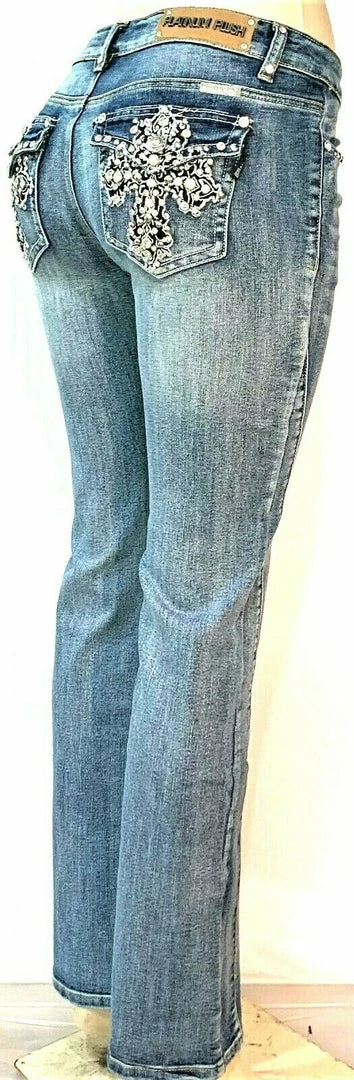 Be the first to review “Platinum Plush® Women’s Cross Rhinestone Denim Boot Cut Jeans, Style #4034” Cancel reply