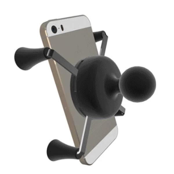 The RAM-HOL-UN7-400U consists of the small Tough-Claw™ base and universal X-Grip® cradle. The X-Grip® cradle has a clean and clever four leg design that sports great holding power without hiding your smart-phone behind foam pads and plastic. The X-Grip® cradle expands and contracts for perfect fit of most smart phones. This mount rotates 360 degrees. The X-Grip® includes a device tether recommended for outdoor applications. The cradle is compatible with handheld devices that will fit the dimensions listed below. It is important to verify the dimensions of your handheld device with a case/sleeve/skin when determining the overall size.