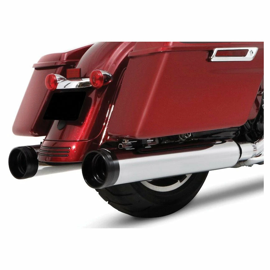 | Are you looking for an extreme sound that lets the engine scream? The new DBX45 is your answer. All new, from the leading innovator in American V-twin exhaust, Rinehart Racing is proud to introduce the DBX45 Slip-On mufflers. Built with a newly designed baffle, in our already popular 4.5” muffler body, this newest offering from Rinehart gives Milwaukee-Eight Touring bikes a much louder, head turning sound that is sure to get the heart pounding. The DBX45 is the perfect solution for riders who want to wake up the quiet M8 motor. You told us what you wanted and we’ve delivered. Features: