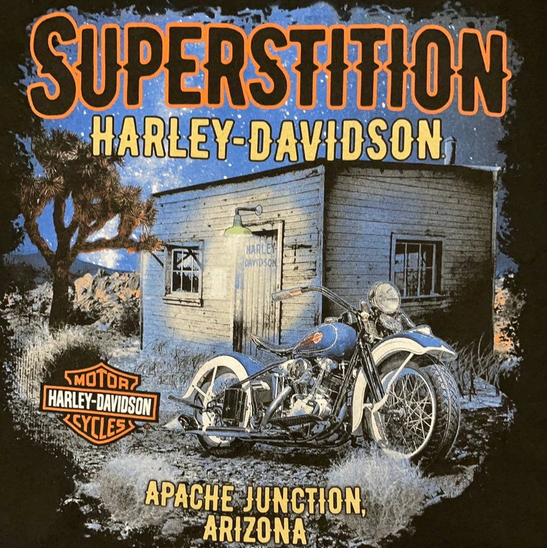 Be the first to review “Superstition Harley-Davidson Harley-Davidson® Badge Night Back Short Sleeve T-Shirt, Black Dealership T-Shirts” Cancel reply