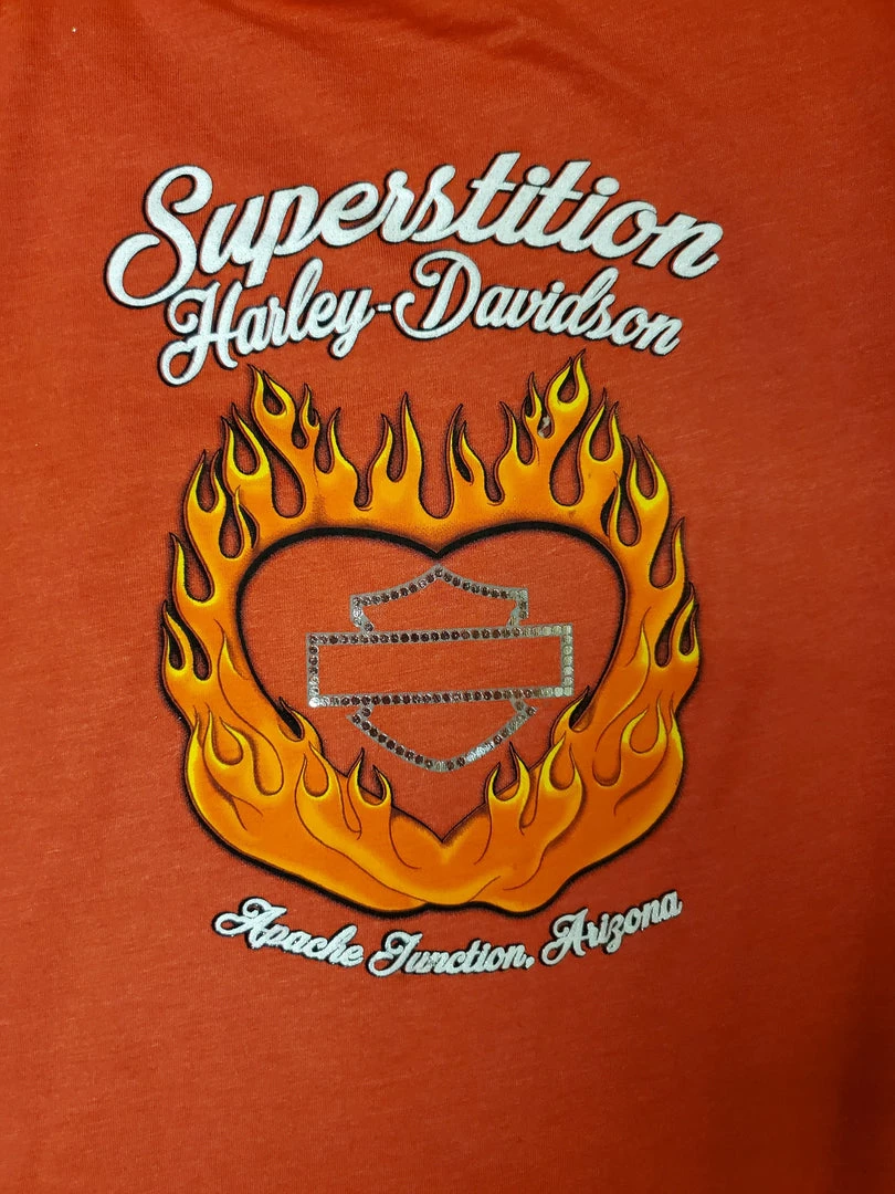 - Backside: Custom Superstition Harley-Davidson Flamed Heart Graphic