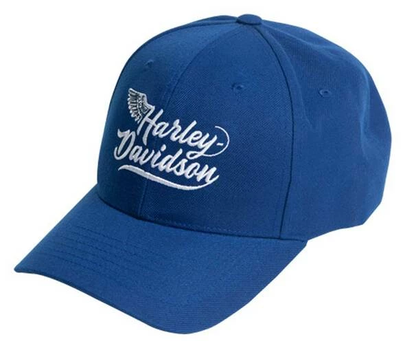 Comfortable six panel structured curved bill hat. Constructed from soft durable 100% polyester. Awesome winged H-D® script graphic embroidered on front. Our Superstition Harley dealer name in white stitching on back. Adjustable self strap and slide buckle closure. High-quality and super comfortable ball cap, perfect for any Harley® enthusiast.