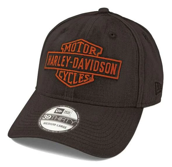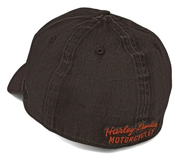 - Harley-Davidson® Men’s Bar & Shield Vintage Wash 39THIRTY Stretch Fit Baseball Cap – Gray, 97617-22VM. Made from 100% cotton twill. Comfortable stretch fit. Official 39THIRTY® silhouette by New Era with visor sticker for authenticity. Raised embroidery. Embroidered New Era flag label. 97617-22VM