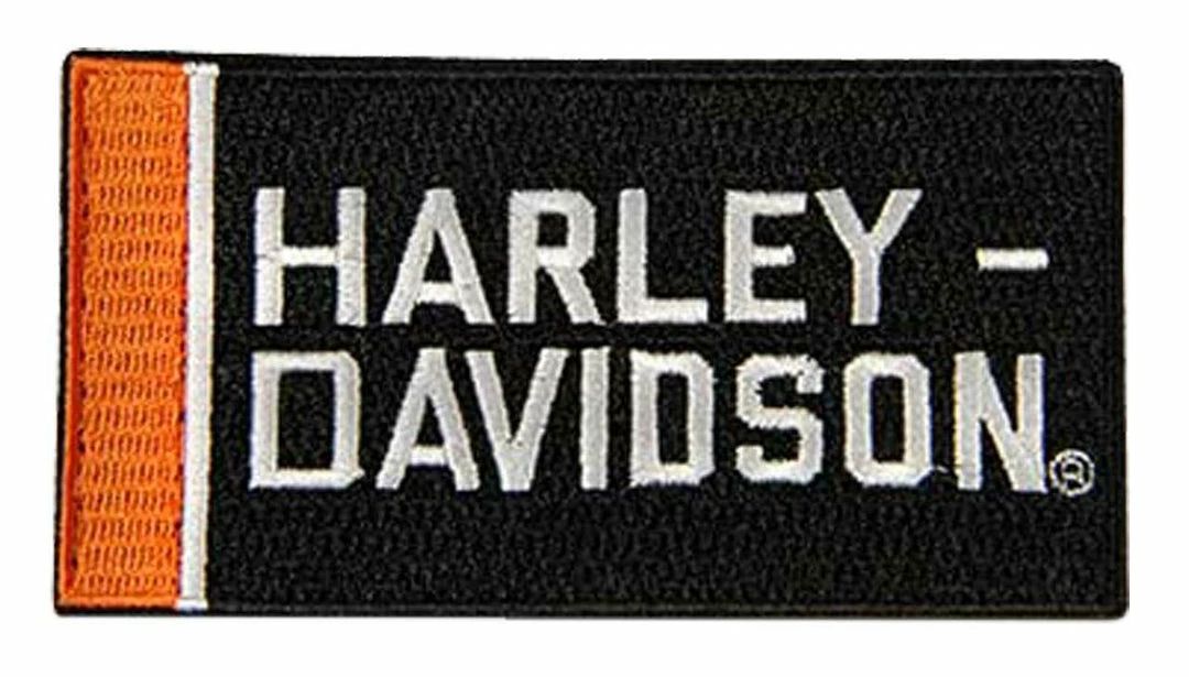 - Bold orange bar with classic Harley-Davidson® text