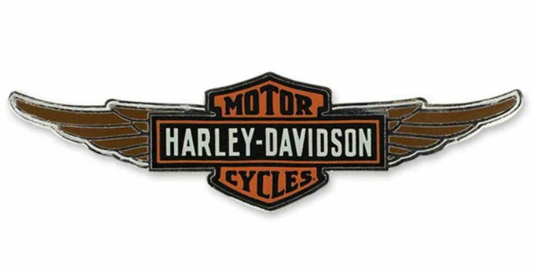 Harley-Davidson® Long B&S Winged Pin, P153064. Iconic elongated Bar & Shield logo accented with eagle wings. Cloisonne design pin. Polished nickel finish. Heavy relief two flat head pin backs. Size: 1.75″ W x 0.4375″ H. P153064