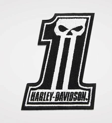 Presented here is #1 logo in the form of a beautifully embroidered patch with Willie G’s skull design, suitable for sewing onto leather or denim jackets or shirts. The patch is small, measuring 4-inches in height. The Harley-Davidson® museum says the #1 symbol was designed in honor of the Harley-Davidson® race team’s Grand National Championships. This is just one of a number of artistic incarnations of the original symbol. This patch is perfectly sized for jackets, vests, or anything where you want to boast the fact that Harley-Davidson® remains “Number One” in the world of motorcycling.