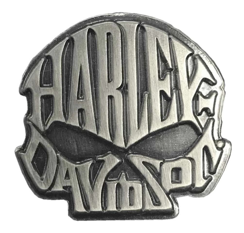 Willie G Skull head with Harley-Davidson text. Heavy relief flat head pin backs. Great gift for a friend or even yourself!
