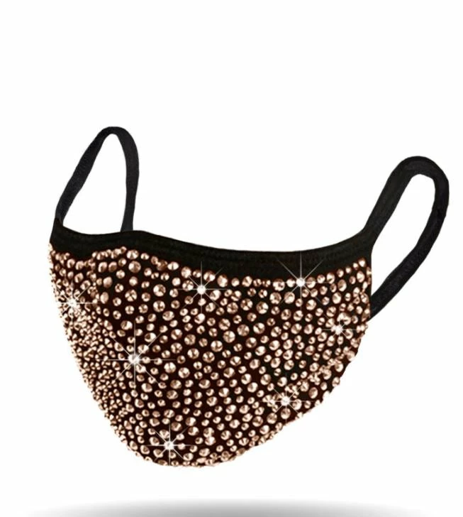 This dazzling face mask is cute and functional. Soft, stretchable, breathable fabric adorned with dozens of beautiful rhinestones. Be protected in style!