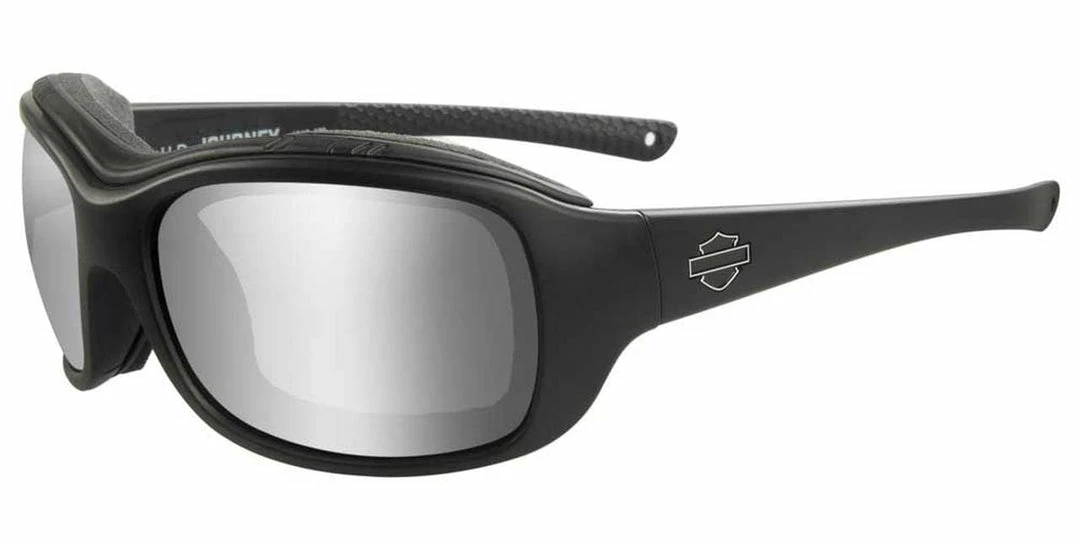 Part of the Climate Control Series. PPZ™ Silver Flash smoke gray lenses with matte black frames. Features a timeless Bar & Shield logo on both temples. Comes in a zippered hard case. Eyewear meets ANSI Z87 high velocity impact and high mass impact requirements. This means they are able to withstand 20 .25 caliber steel projectiles fired at 150 FPS and a 1.1 lb. projectile dropped from 50″. Fits head sizes small and medium. RX Ready, can be fitted with single vision or progressive prescription lenses. Includes a removable Facial Cavity™ Seal that comfortably protects your eyes from wind, dust and debris. Features a Click A.I.R Gasket. Click A.I.R Gaskets (A.I.R = Air Intake Regulator) take your eyewear experience to the next level. Designed to shield your eyes from harmful debris, it creates resistance against fine dirt particles. Push down on the top of the gasket and CLICK A.I.R will increase airflow while improving aerodynamics. The ventilation processes eliminate fogging to make each ride safe and comfortable. PPZ™ Silver Flash (Smoke Gray Base): The ultimate day riding lens. Perfect for bright/glare conditions, these lenses provide maximum shade without distorting road hazards such as potholes, oil, ice and water. PPZ™ lenses also eliminate visual distortion patterns allowing the rider to read GPS devices, mobile phones and gas pumps. Light transmission: 14% +/- 3%.