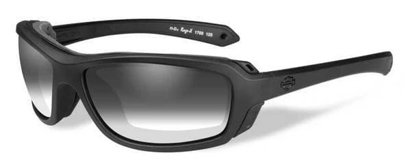 Part of the Wiley X Climate Control Series. LA Light Adjust smoke gray lenses and matte black frames. Features a sculpted blank Bar & Shield logo medallion on both temples. Shatterproof Selenite™ lenses are ANSI Z87.1-2003 safety rated. This means they are able to withstand 20 .25 caliber steel projectiles fired at 150 FPS and a 1.1 lb. projectile dropped from 50″. No other eyewear offers riders this level of certified protection. Removable, soft foam Facial Cavity™ seals lock onto lightweight ANSI rated frames that literally seal your eyes from anything the road or weather throws at you. Patented removable Facial Cavity™ Seal blocks out wind, dust, debris, and cold to keep your eyes well protected and tear free. Specially designed Top Down™ Ventilation lets air flow through vents in the top of the Facial Cavity™ Seals and out the bottom. So when things heat up, the road ahead remains clear. Eyewear includes: Semi-hard zippered case, leash cord and cleaning cloth. LA™ Light adjusting Smoke Gray Lenses: The most convenient lens darkens based on the amount of UV radiation present. As the sun becomes lower on the horizon (early morning, late afternoon or dusk) the atmosphere filters the UV radiation and lenses transmit more light to the eye. Because of the optical clarity, these lenses are ideal for riding from dusk into the night. Many riders chose the convenience of having a single glass with LA Light Adjusting lenses for both day and night riding. Fits head size Medium & Large. Size: 76-25-120.