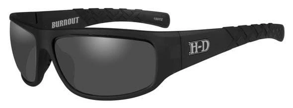 Features a classic H-D emblem on both temples. Dark smoke gray silver flash lens and matte crystal black frames. Includes: soft pouch, that can double as a cleaning cloth. Eyewear meets ANSI Z87 high velocity impact and high mass impact requirements. Fits head sizes Medium and Large. Silver flash smoke gray lenses provide maximum shade on those bright days. This is the darkest lens offered. The multi-layer silver flash coating buffers light transitions from light to dark and vice versa. The neutral gray color will not distort color perception.