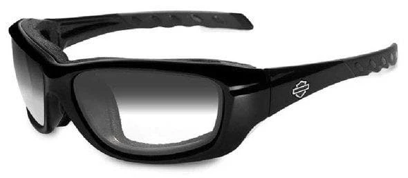 This pair of Harley-Davidson® Wiley X® Gravity sunglasses feature LA™ (Light Adjusting) Smoke Grey Lenses set in gloss black frames. These provide the ultimate in one-pair convenience for both day and night eye-protection. The lenses darken in sunlight allowing only 15% light transmission, while lightening at night allowing 85% transmission. The lenses are non-polarized. The frame width is 62 mm, and the glasses come with a leash cord, a semi-hard black zippered case, and a cleaning cloth. Designed to be fashionable, a Harley-Davidson® Bar & Shield® silhouette logo adorns the temples. These glasses also feature Wiley X’s® patented removable facial cavity seal technology. Gaskets block-out wind, peripheral light, dust, and debris even at high speeds. There is no better protection from hazards. Shatterproof lenses block 100% of UV rays, and symmetrical venting allows cool air to enter the frame naturally. These sunglasses exceed ANSI Z87.1-2010 high velocity safety and high mass impact standards. A world leader in protective eyewear research, development, and marketing, Wiley X® has been providing its products to the US military, law enforcement, and civilian markets since the 1980’s. And beginning in 2012, Wiley X® and Harley-Davidson® joined forces by licensing Wiley X® to make performance riding eyewear under the Harley-Davidson® brand. Harley-Davidson® Performance Eyewear by Wiley X® was an instant success. Harley-Davidson® and Wiley X’s® focus is to provide innovative and quality performance eyewear to the riding enthusiast.