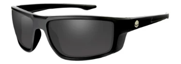 Part of the Asphalt Series. Smoke Gray lenses with gloss black frames. Features a Harley-Davidson® Willie G Skull graphic on both temples. Includes: soft draw-string pouch, that doubles as a cleaning cloth.