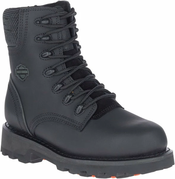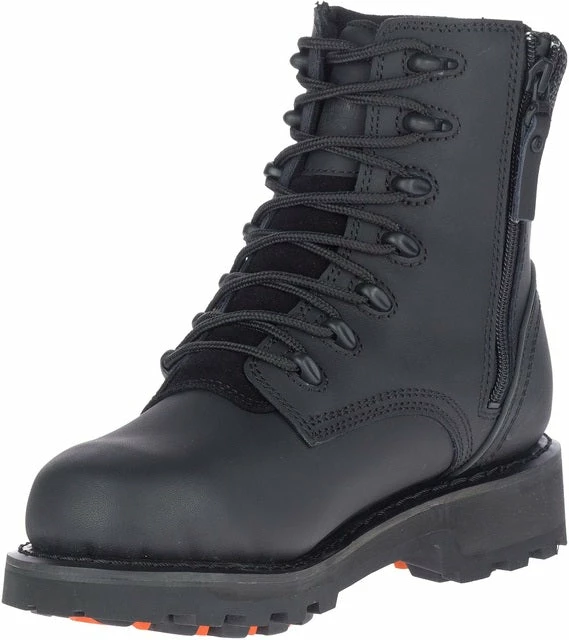 Harley-Davidson® Women’s Riding Appropriate* Landers 6.25-Inch Waterproof Black Motorcycle Boots, D84757. Designed for the serious rider, the Landers 6.25″ riding boot is waterproof, features 3M™ reflective piping for added visibility, ShockAbsorbers Twin Pad™ technology for ultimate comfort, ultra-durable Goodyear® welt construction for long life, and YKK® locking inside zippers for a fast getaway. Made with waterproof full-grain leather and a breathable Hydro-Guard™ lining, these boots keep your feet dry no matter the elements. The boots have blackened metal eyelets and a twin-pair of speed-hooks for the final tie-off. The side zipper has a leather tab. A debossed Bar & Shield® in pressed into the tongue, and another logo is inserted into the side of the boot. A nylon cushioned collar provides all day comfort. The tread elements are a bright Harley® orange, and a Harley-Davidson® logo insert appears at the instep. The Landers is a true cross-over boot made for riding, walking, or hiking. No matter the activity or weather you’ll be comfortable all day long. Be ready for anything with this boot. Total height: 7.5”; Shaft height: 6″, Heel height: 1.5″. Sizes US: M 5-10, 11. Manufacturer Part Number, D84757. Wolverine® and Harley-Davidson® have a long tradition of bringing original and functional footwear to our Motorcycle Lace-Up enthusiasts. Loyal. Tough. Fearless. Our Footwear embodies the spirit of the open road, as well as the men and women who proudly wear the name. With a growing global presence, Harley-Davidson® Footwear markets functional riding and fashion footwear to anyone who seeks quality and values the Harley-Davidson® brand. Whether it’s performance or fashion, we have what you need. Officially Licensed Harley-Davidson® Product by Wolverine®. *Riding Appropriate – Abrasion, slip, and oil-resistant boots, ideal for riding motorcycles.