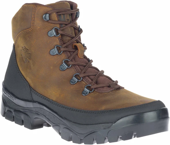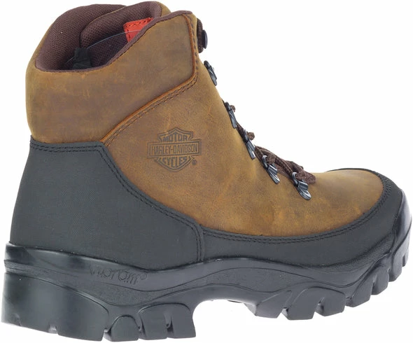 Level up your riding style with these Macleod Waterproof Riding Boots, rated “BEST” in all three outsole performance measures – BEST in Abrasion, Slip, and Oil resistant. Made with waterproof full-grain leather and a breathable Hydro-Guard™ lining, these boots keep your feet dry no matter the elements. With durable black Vibram® rubber outsoles for optimal traction, these hiker styled boots are ready to hit the road or the trail. Lacing is accomplished using five HD® logo D-Ring eyelets. A single speed hook finishes the job. With a cushioned collar and tongue, the miles just glide by. A debossed Bar & Shield® logo adorns the outside face of the shaft, an H-D® logo is on the tongue, and a raised Vibram® logo is on the side of the outsole. A bright yellow Vibram® logo is inserted into the street-side instep, out of sight. The MacLeod is a true cross over boot made for riding, walking, or hiking. No matter the activity or weather you’ll be comfortable all day long. The boot’s sole, insole and upper are bound using state-of-the-art cement construction processes. Be ready for anything with this boot.
